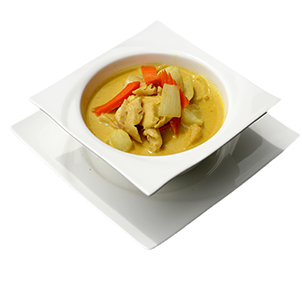 Yellow curry paste with chunks of chicken, potatoes, onions,