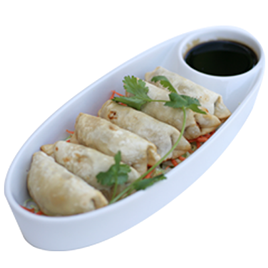deep fried assorted vegetables or chicken wrapped with wonton skin.