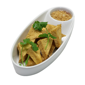 Deep fried pork rib with garlic and pepper served with sweet sauce.