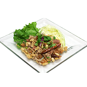 Specialty crispy rice, ground pork, ginger, onions, peanut, sour pork sausages in spicy lime dressing.