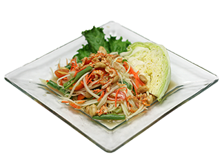 Green papaya mixed with garlic tomato, green beans, dried shrimp mixed with ground chili and lime juice.