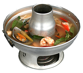 Seafood, lemongrass, lime leaves, basil leaves, chili and lime juice.